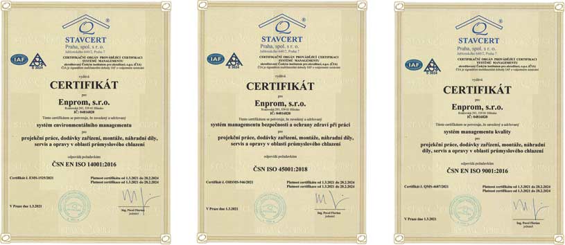 Jsme firmou, která staví na bohatých zkušenostech našich zaměstnancůSpolečnost Enprom s.r.o. působí na českém a slovenském trhu jako specialista na průmyslové chlazení. V tomto oboru nabízíme projekční práce, dodávky zařízení, montáže, náhradní díly, servis a opravy. Máme zkušené zaměstnance s dlouholetou praxí. Poskytujeme služby na profesionální úrovni.