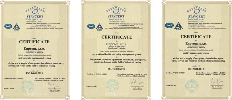Enprom s.r.o. operates on the Czech and Slovakia market as a specialist in industrial cooling. In this field we offer design work, equipment deliveries, assembly, spare parts, service and repairs. We have experienced employees with many years of experience. We provide services on a professional level.